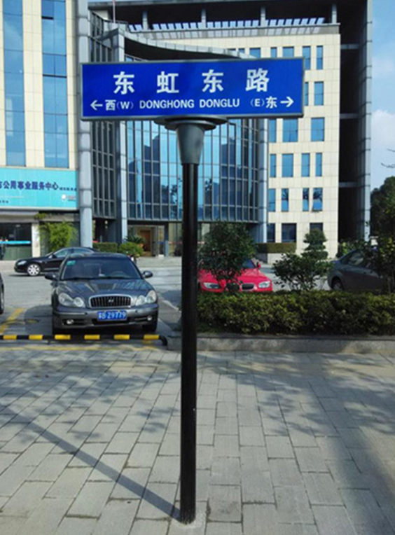 產(chǎn)品工藝:立柱表面處理采用靜電噴塑、汽車烤漆等,牌頭采用型材制作,標(biāo)準(zhǔn)件ABS托盤,路名字+底膜均采用工程級(jí)反光膜等。